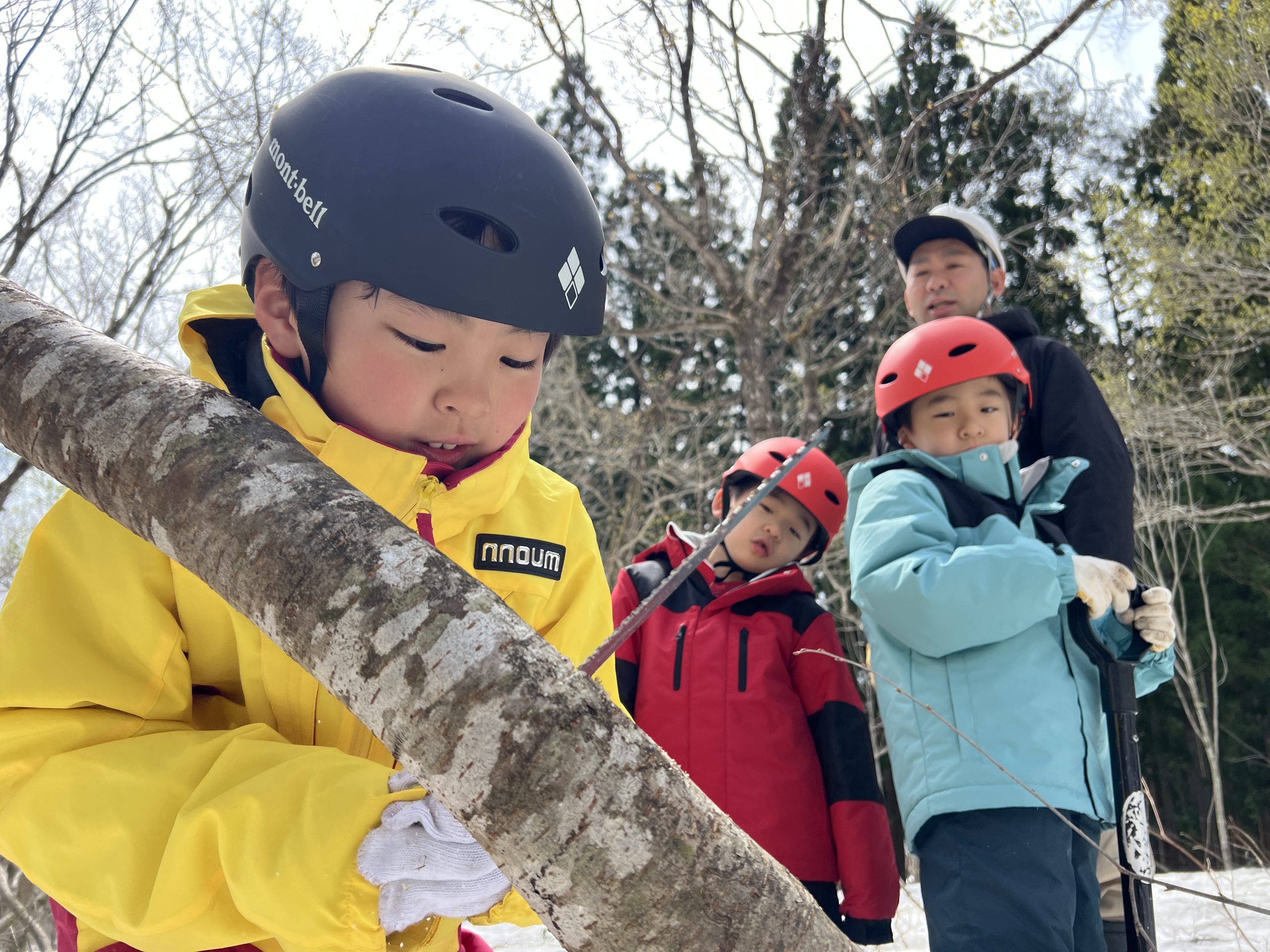 普段はどこに行ってもたいてい「自然を守るため木や枝を傷つけないで下さい」と言われるのに、ここでは自由に木を切って工作できるのが新鮮で貴重な体験でした。