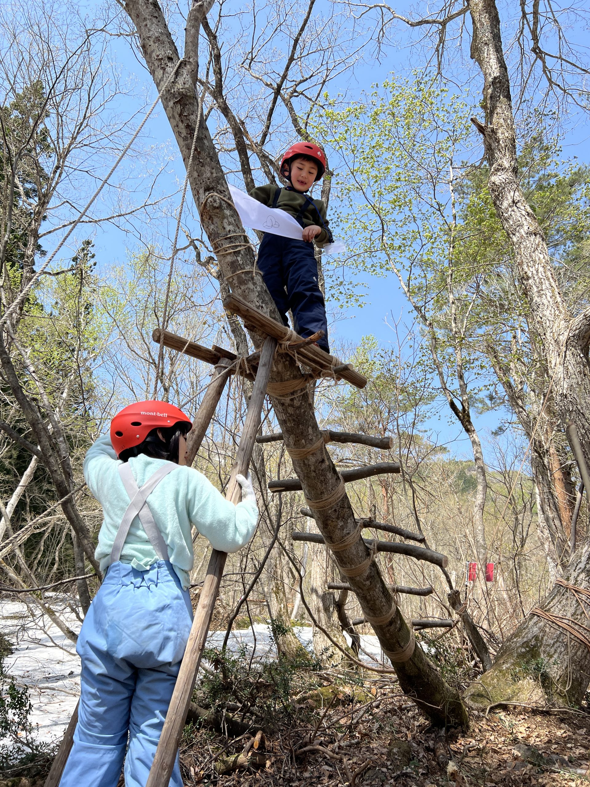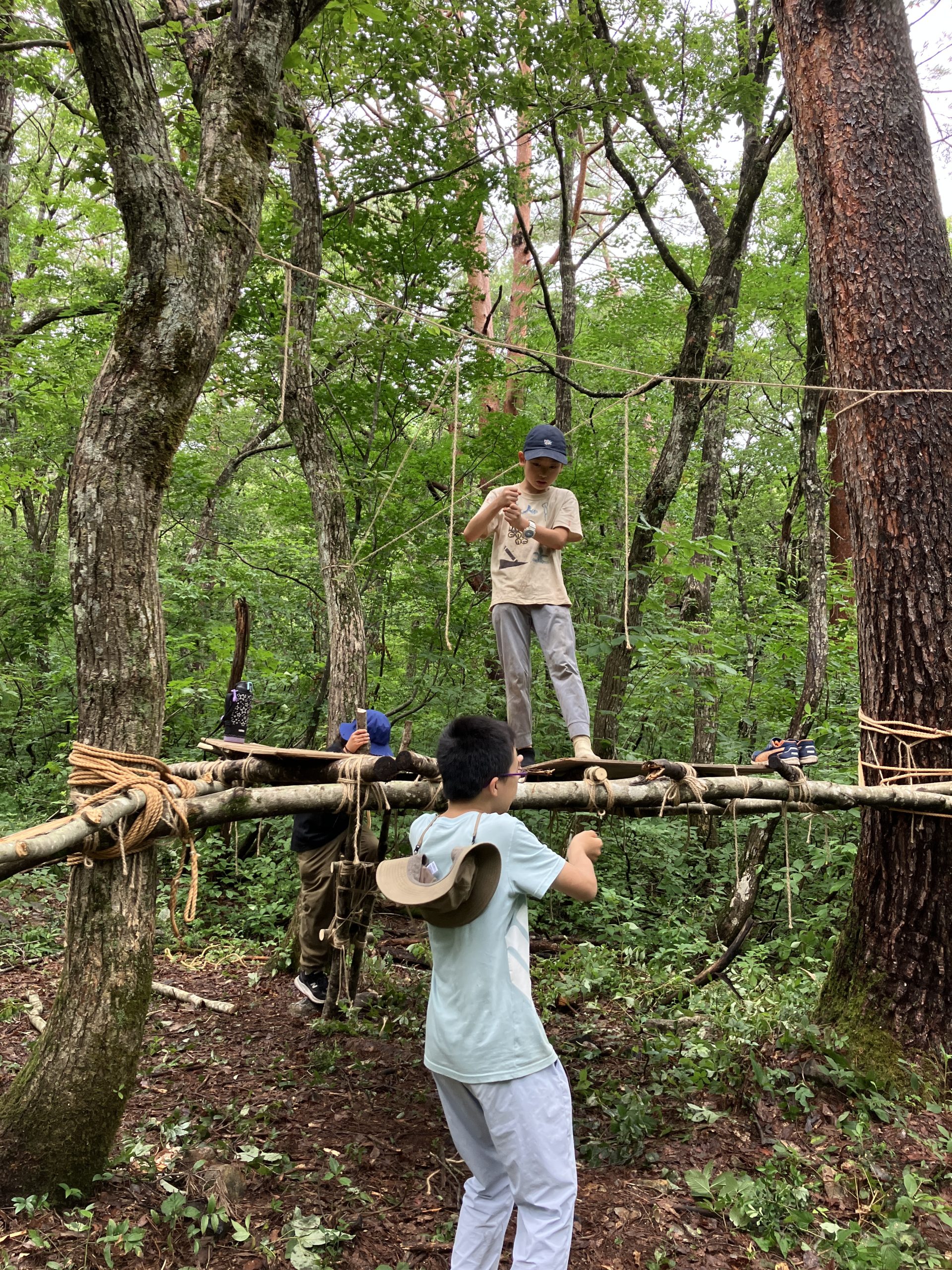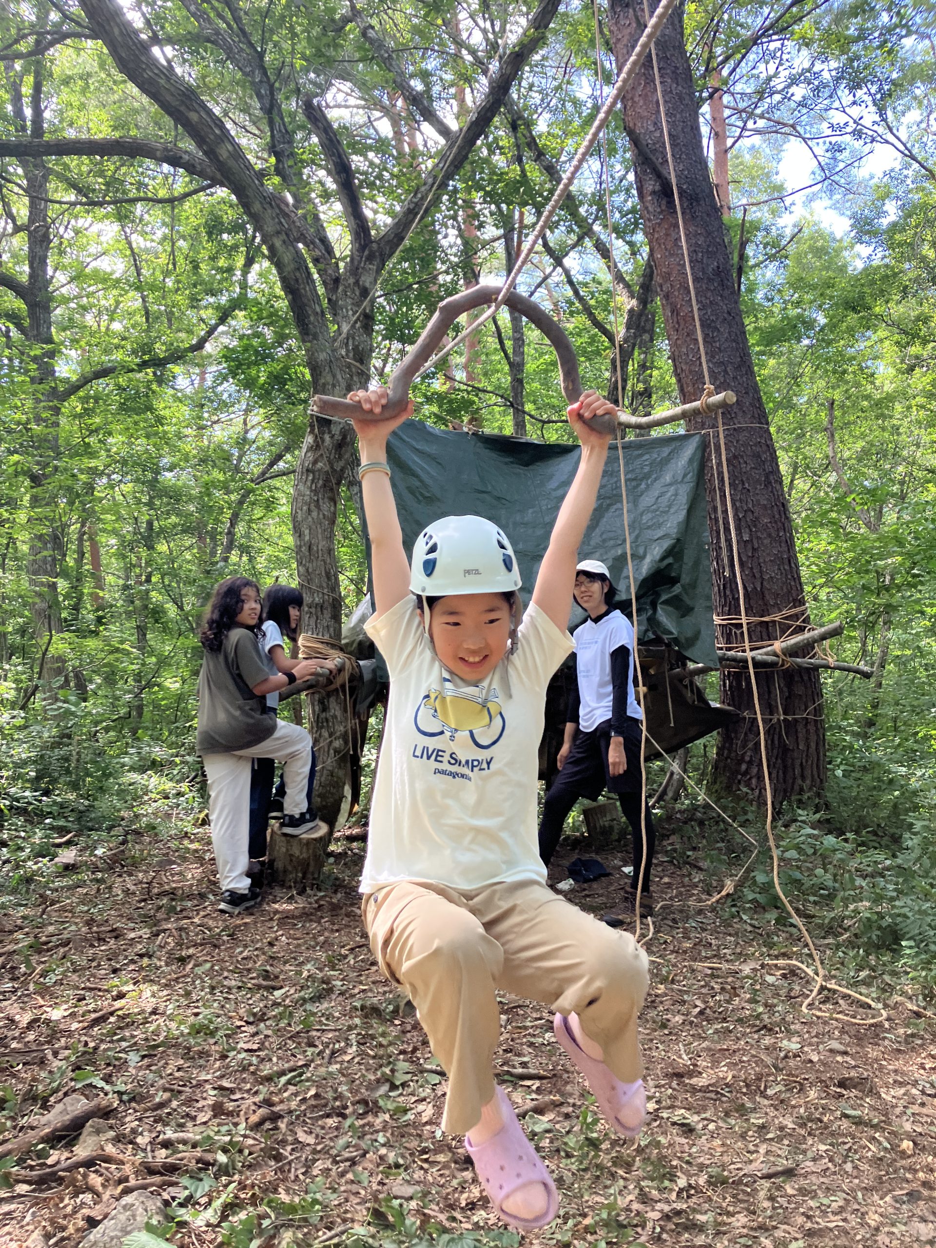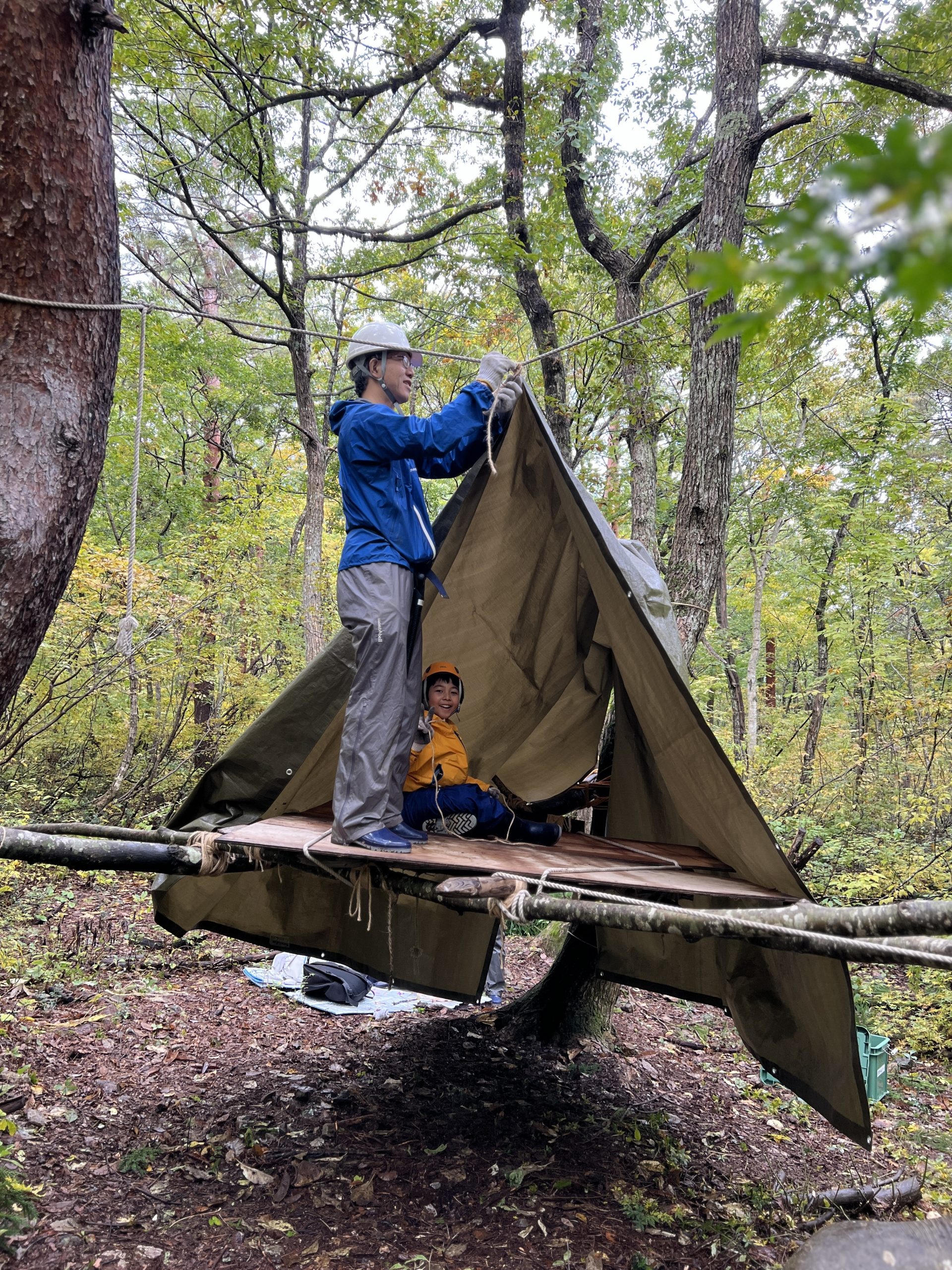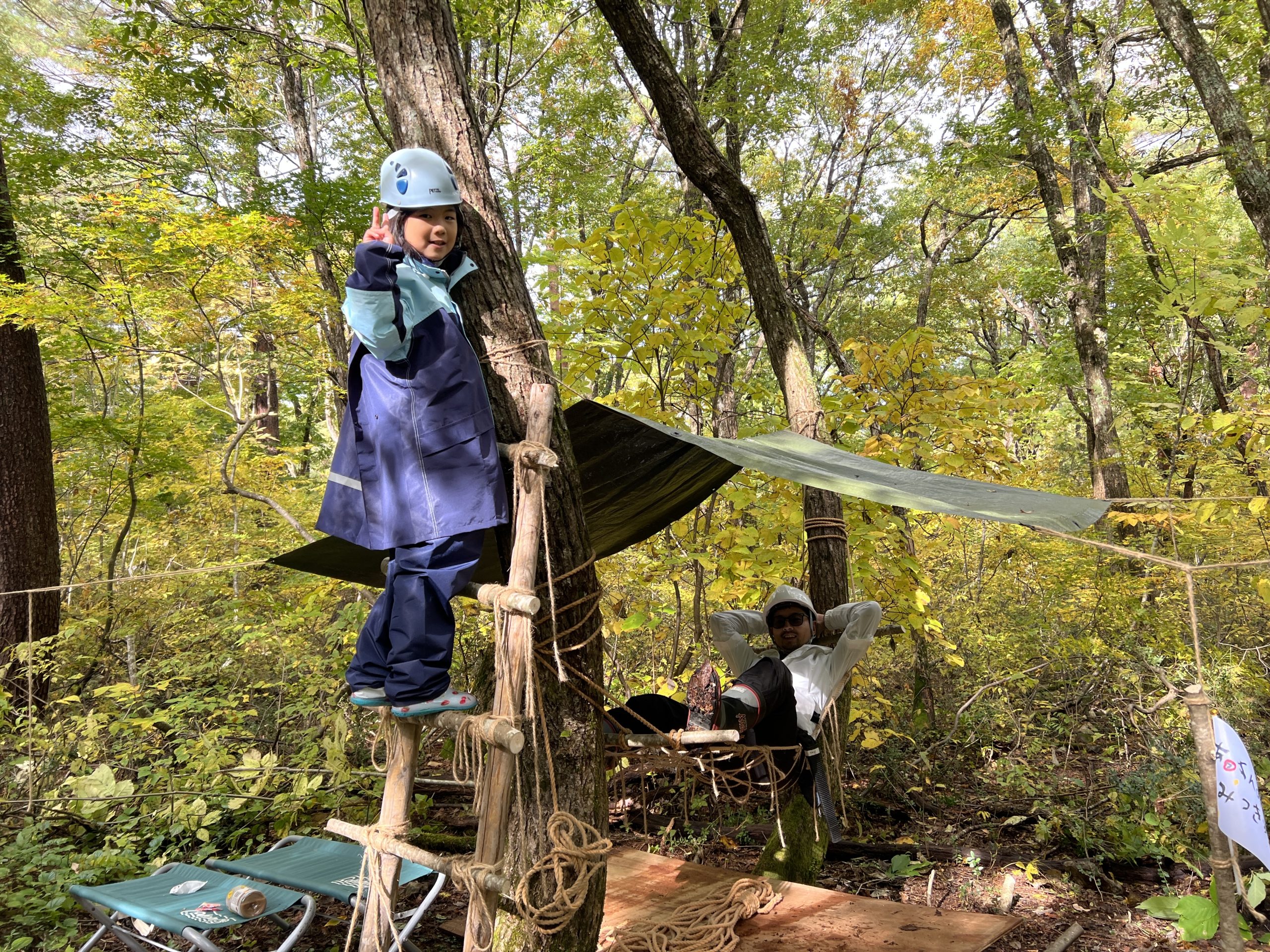 前回のGWに引き続き参加したが、前回の続きからできたことで、チップラインの製作に作業のほとんどをあてることができてよかったです。おかげで無謀とも思えた森の開拓や巨大はしご、ジップラインを完成させることができ、感動しました。子どもだけでなく親も楽しめた3日間でした。