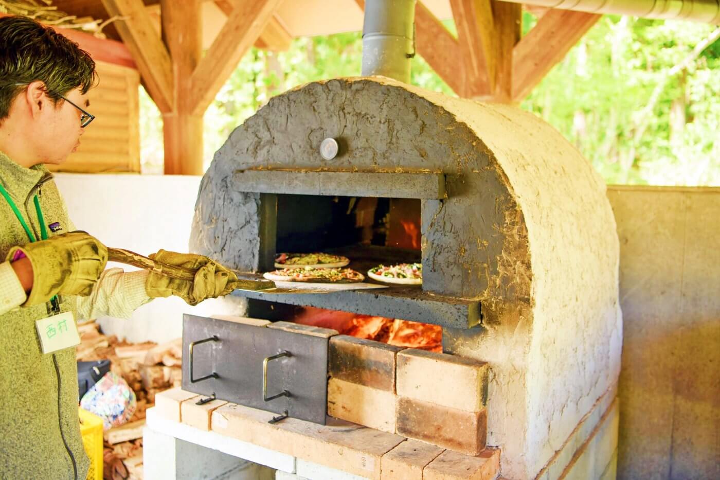 美味しさに定評のあるピザシートに、自分でとってきた季節の森の恵みをトッピングし、手作りの本格石窯でこんがり焼きたてを食べるまでの体験です。