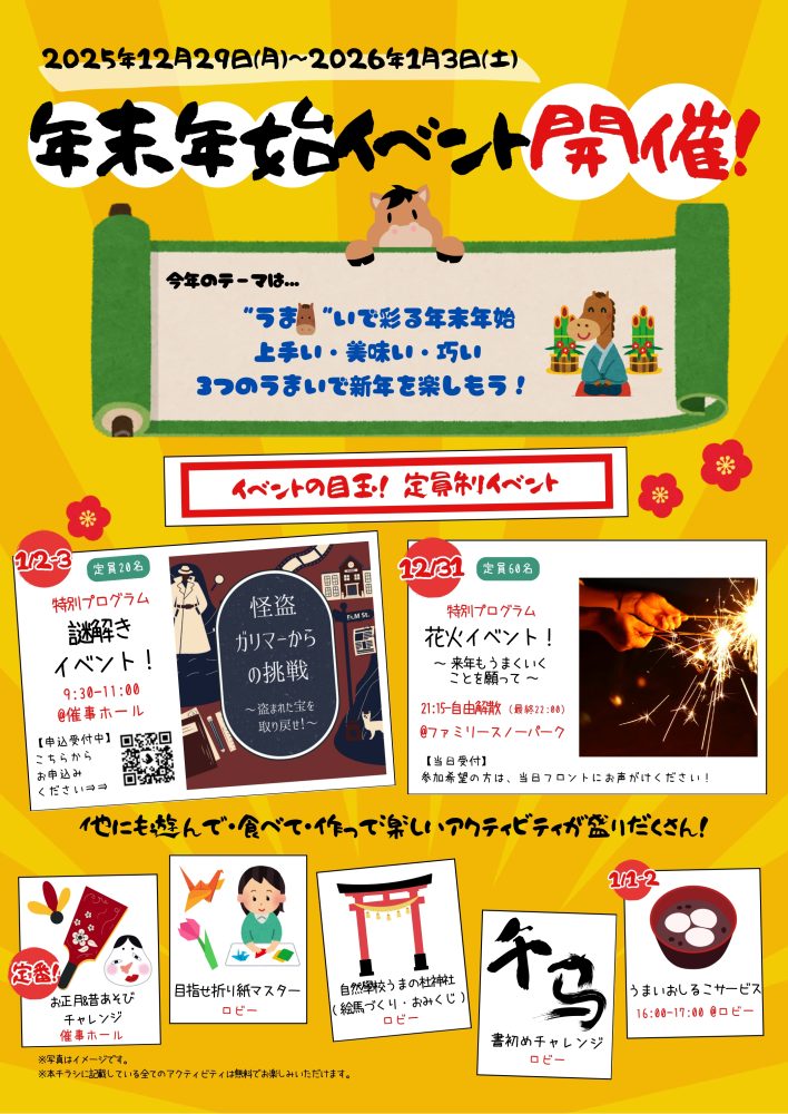 年末年始(12月29日~1月3日)に限り、特別イベントを開催いたします。ぜひご参加ください!