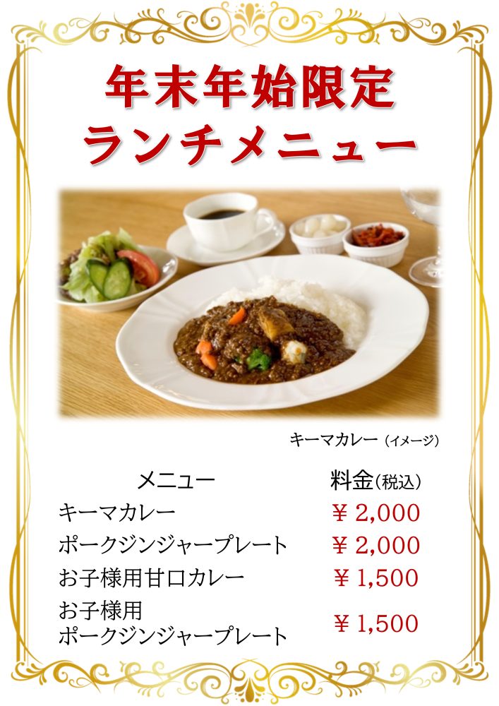 年末年始(12月31日~1月2日)に限り、自然學校のフレンチレストラン”La Rivière Blanche”にてランチの営業を行いますので、ぜひご利用ください!