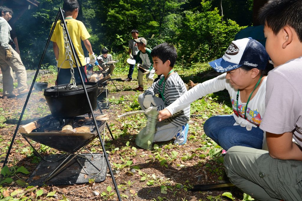岐阜県博物館の恐竜博士の紹介のもと、白川郷周辺の恐竜が生きていた時代の地層と化石を巡ります。化石の割り出しや、恐竜の最新情報が入った博士の森の授業など、恐竜好きにはたまらないサイエンスキャンプです。翌日には恐竜を食べる焚き火料理にも挑戦します。